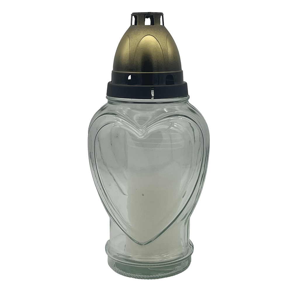 Lanterne verre et plastique 25cm – transp. C?ur + dor?e – 48h – Recharges MLR1,RE1,RE1-R,RE1-J